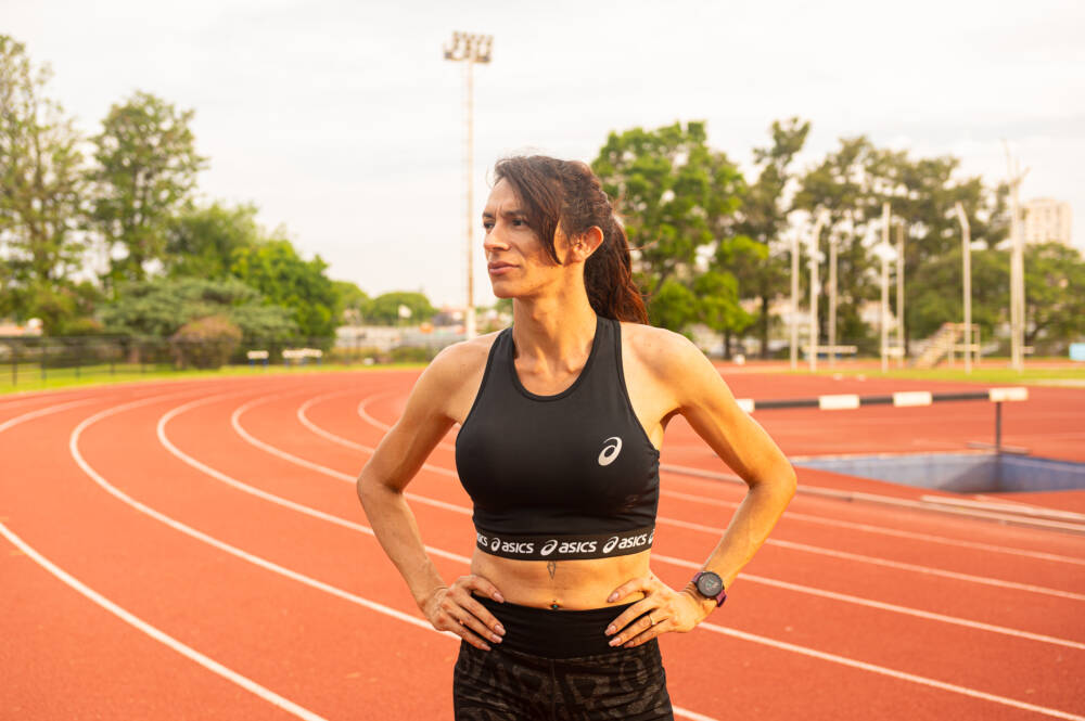 En el caso de Anna, atleta corredora, mujer trans paraguaya que vive en CABA, habrá que detenerse en su pisada. La zapatilla prueba la pista de carreras, tienta el suelo a donde pertenece, planta bandera.